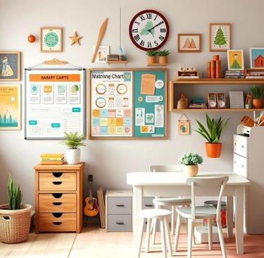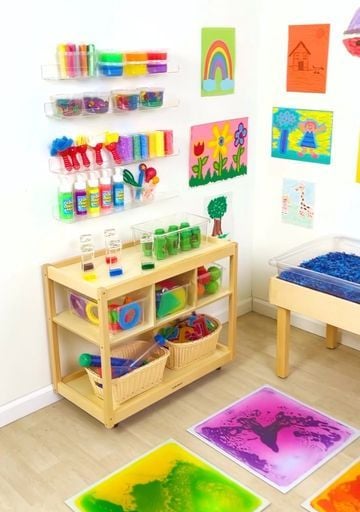 Educational wall displays reinforce learning through visual repetition. Displaying student work builds confidence and pride, while charts and maps support visual learners and passive learning throughout the day.