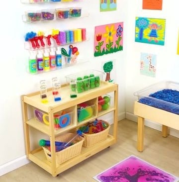 A dedicated art space communicates that creativity is valued. Easy access to materials encourages self-expression, fine motor development, and problem-solving skills. This zone supports emotional expression and allows learning to extend beyond traditional academics.