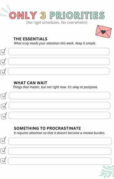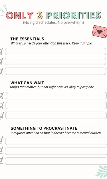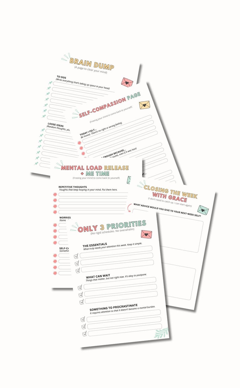 A gentle weekly planner designed to help you think less, release mental load, and move through your week with more calm and less guilt.